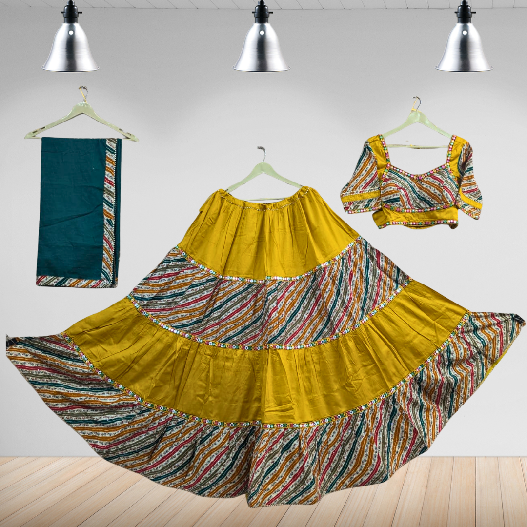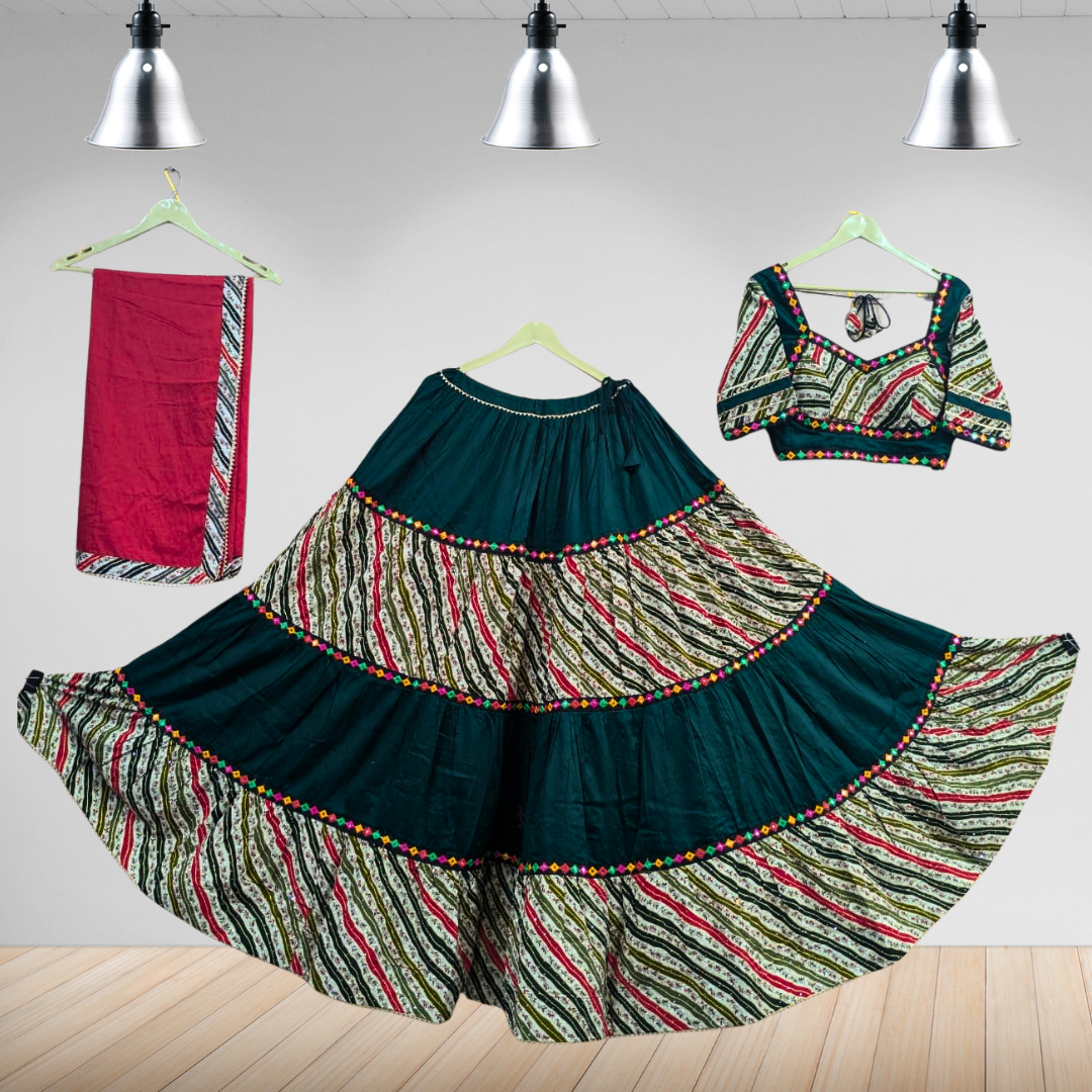 Bandhani Print Cotton Chaniya Choli Set – Festive Traditional Wear Available in 3 colors