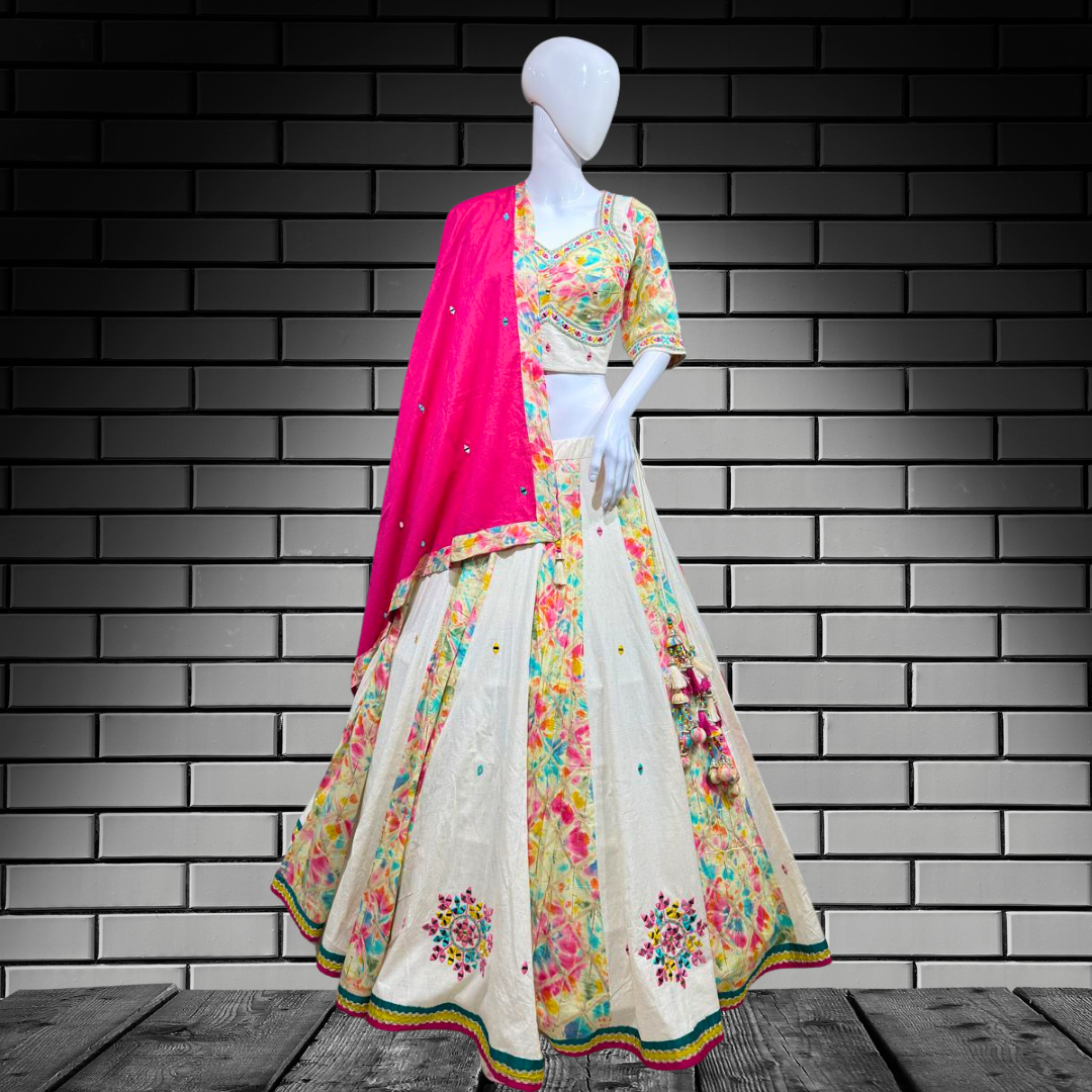 Bring vibrance to your festive wardrobe with this gorgeous multicolor Chaniya Choli set, crafted for those who love a perfect blend of tradition and modern style.